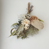 バンクシアとスモークツリー、アクセントでパームフラワーを使用したアレンジメントです。